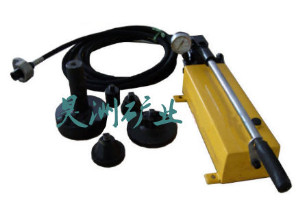 產品介紹: DZD40-A型底板比壓儀集增壓、測壓、測底板比壓(配壓模)、測錨桿拉力(配卡具)功能于一身。無供液系統地段支護搶險,液壓支柱修理后的壓力測試等。便于攜帶,靈活方便。使用支柱初撐力達到 25Mpa以上。 主要技術參數: 工作壓力: 0~40MPa; 泵缸容積:589cm2 ; 操作手把力矩:66N.m; 測錨桿拉力: 10t; 壓模規格:¢40、60、80、130; 重量:28kg;
