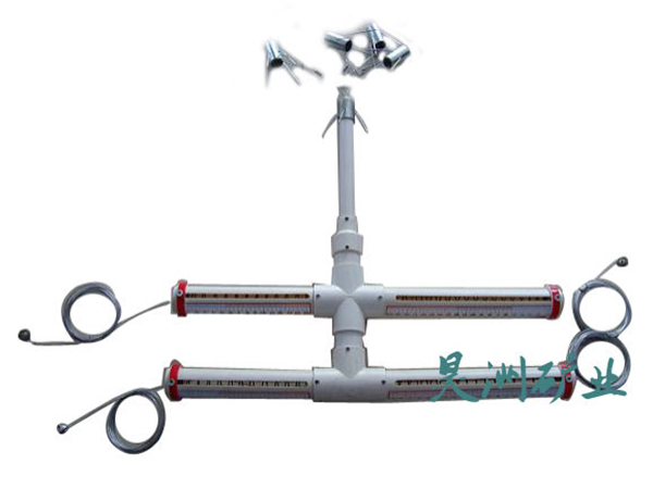 頂板離層儀主要有基點(diǎn)錨固器、鋼絞線、套筒、游標(biāo)、拉緊螺絲組成。